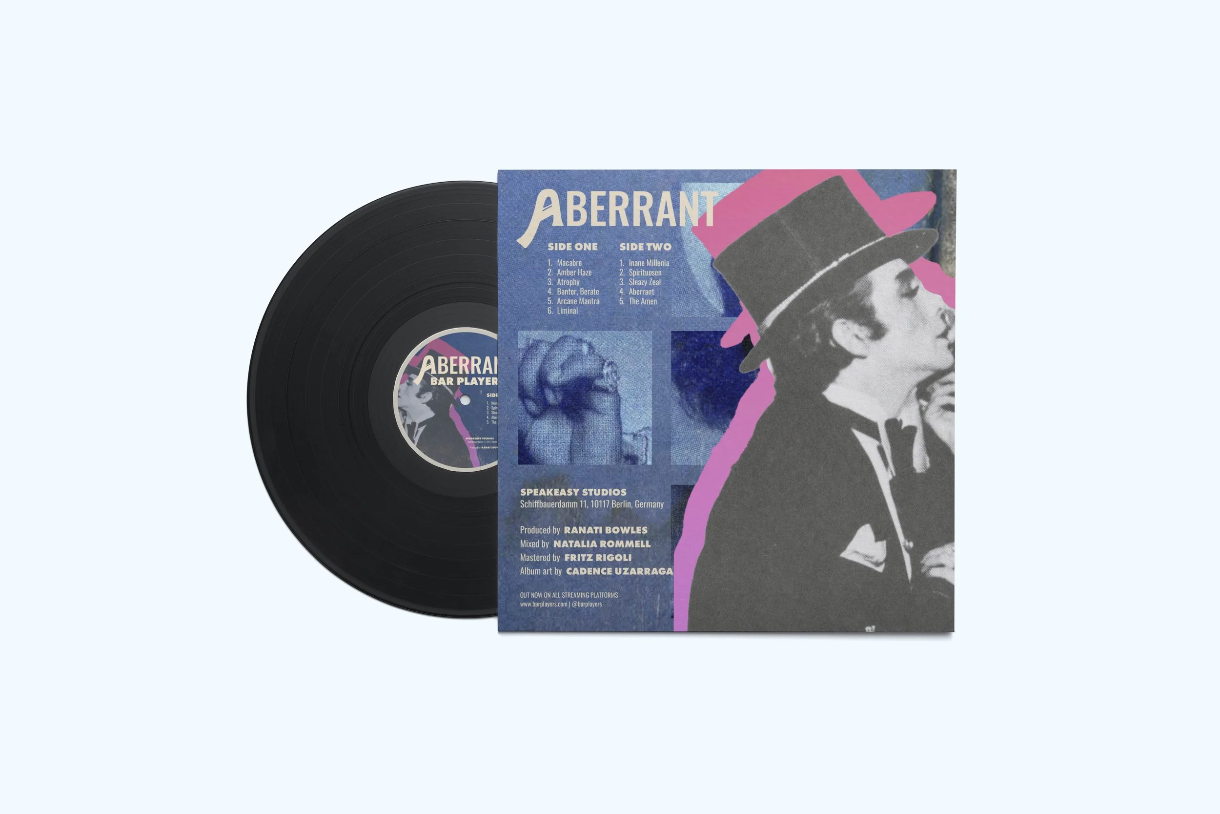 The Aberrant album is a remix of the Cabaret and Mr. Mean records. Aberrant is an adjective that refers to something deviating from the accepted standard. Both albums and their associated movies feature aberrant behavior, with the hedonistic club scene in Cabaret and the Mafia, hit man characters of Mr. Mean. Aberrant explores themes within nightlife and drinking culture, evident in the tracklist, studio, and band name, Bar Players.
