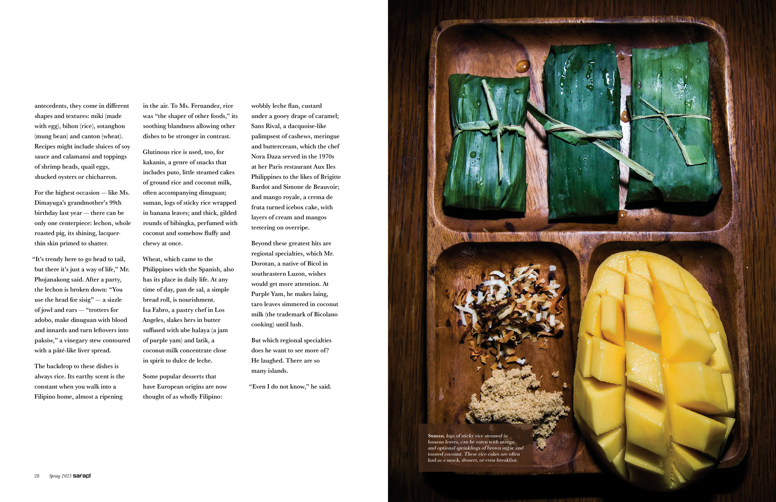 Sarap!, meaning delicious or yummy, is a dynamic print and digital publication dedicated to uplifting the diverse cultures, communities, and cuisines of the Philippines, a country with over one hundred distinctive ethnolinguistic groups. Told through a primarily Filipino-American lens, Sarap! is committed to delivering fresh perspectives by providing a platform for unique and underrepresented voices. Our mission is to celebrate the beauty and diversity of the Philippines and its food by promoting inclusivity, encouraging cultural appreciation, and providing a space for readers to feel understood, valued, and seen.